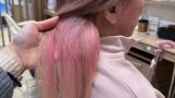 美容室で 初音ミク色インナーカラー ピンクベージュアウター 眉カットも