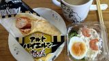 ハローキティートースト、ポークビッツ+スクランブルエッグ、カフェラテ、砂糖不使用ヨーグルトでした。