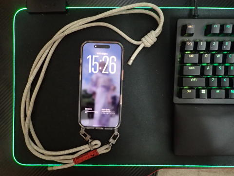 スマホケースは、Topologie製のスケルトン(ショルダーストラップ対応)を 13 Pro用 → 15 Pro用 → 17 Pro用と買い換えています。ショルダーストラップは、 13 Proのときに買ったものを使いまわしです。