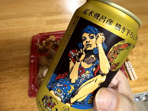 夜は、スーパーで弁当と缶ビールを買って済ませました。エビスビールの缶にイラストが入るようになったんですね。知りませんでした。