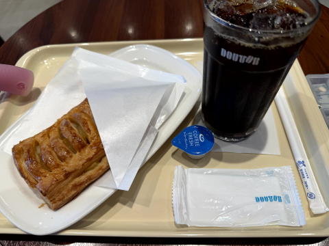 午前中は寝込んでいて、お昼は ドトールでアップルパイ、アイスコーヒー(S)でした。