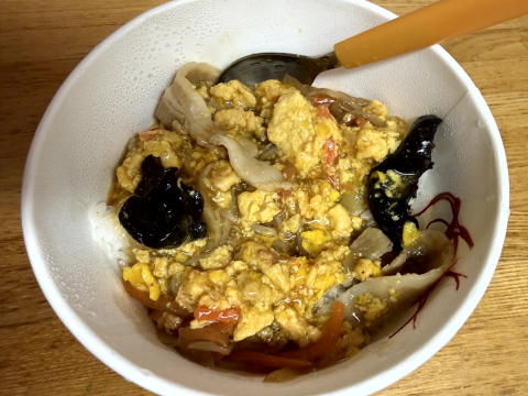 身体がだるいのは治っていたのですが、食事の準備が面倒だったので、ファミマの 玉子ときくらげの中華あんかけ丼です。
