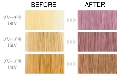 ブリーチの目安として、14LVがギリギリさくら色に見える限界です。わたしは、16~18LVまで脱色していますので、さくら色になりました。ただし、ブリーチはキューティクルが痛むので、十分に髪をケアしながら弱い薬剤で最小限の時間で脱色する必要があり、そこらへんは美容師さんの技量と薬剤によります。