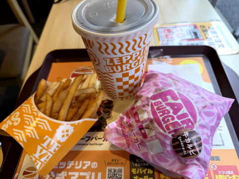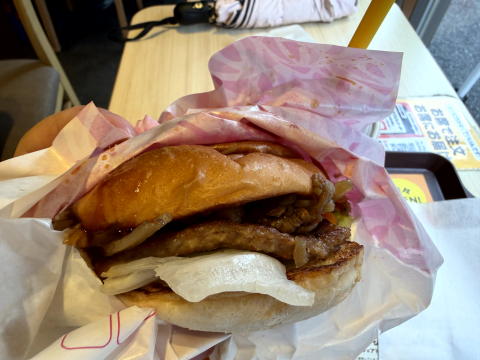 ランチは休憩を兼ねて、神奈川新町駅近くのロッテリアで旨辛牛カルビごぼうバーガーセットでした。