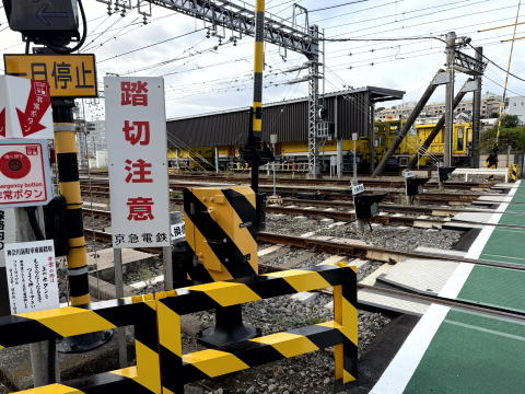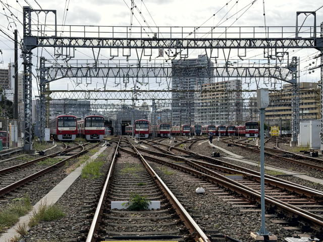 神奈川新町駅に来たら、留置線へ引き込みされた電車がずらり並んだところを正面から撮れるからです。