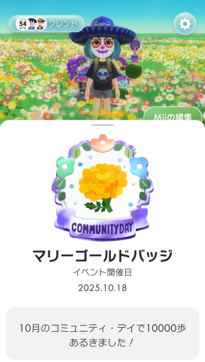 ということで、ピクミンブルームのコミュニティデイのマリーゴールドバッジをゲットです。今のところ、コミュニティデイのバッジはコンプしています。