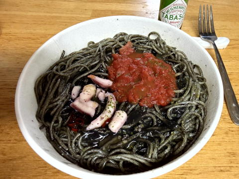 夜は、セブンイレブンで ヤミ闇やみつき イカ墨パスタ でした。