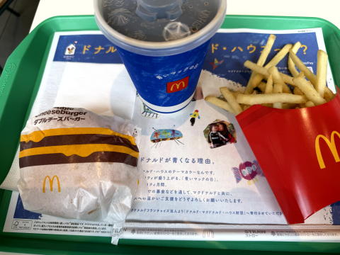昼は、マクドナルドでダブチ(ダブルチーズバーガー)セットでした。