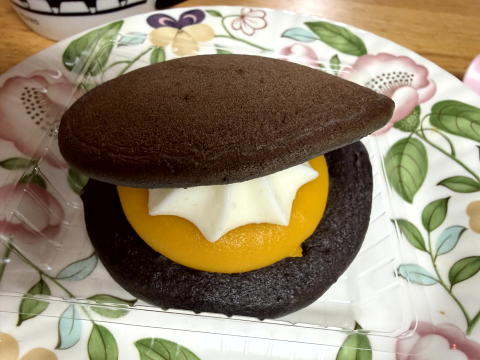 かぼちゃのペーストにマスカルポーネの相性は、悪くはなかったです。どら焼きが黒いのは、ココアだからです。
