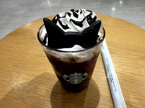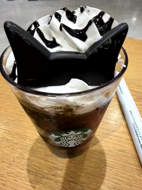 甘酸っぱさとザクザク食感が楽しめる、黒猫の耳がついた真っ黒なハロウィン仕様のフラペチーノ®