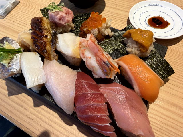 いつもは梅だけど、きょうは寿だから12貫でネタもいい。回転ずしよりは うまいかも。