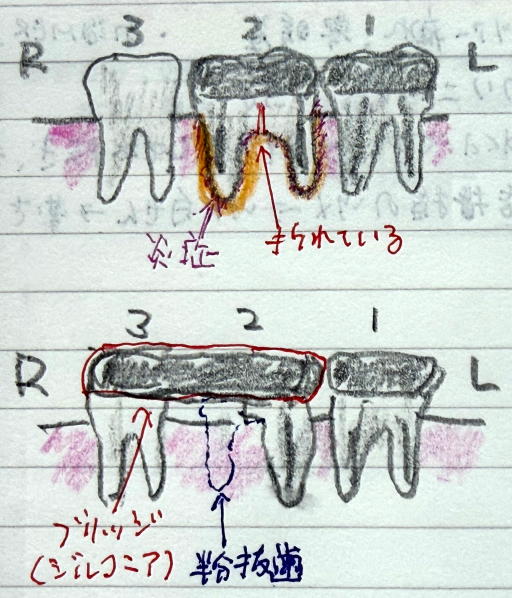 歯が縦に割れているので半分だけを抜歯してブリッジを作れば、インプラントにしなくてよいけど、そんなこと、できるのか?!