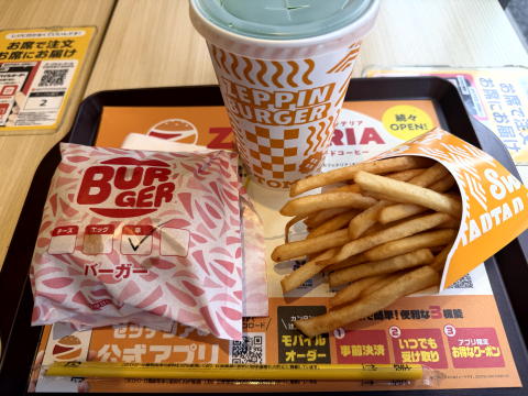 ちょうどお昼なので、神奈川新町駅近くのロッテリアで 旨辛ビーフバーガーのセットでランチしました。