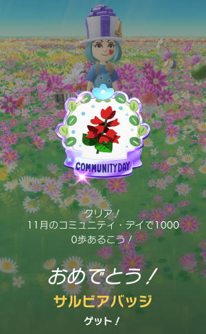 散歩時間は、ちょうど 2時間でした。ピクミンブルームのコミュニティデイだったので、フラワーバッジをゲットです。