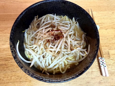 夜は、麺神味噌ラーメンに、もやし炒めを1袋ぶっかけでした。