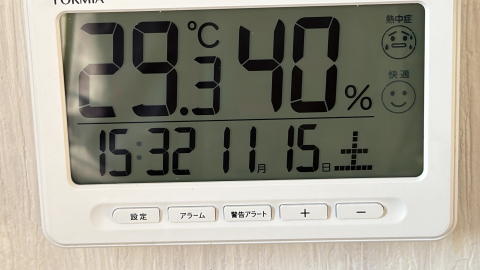 暖房をつけてないのに、太陽光だけで温室効果で 室温30℃、熱中症警告が出ています。周囲にうちより高い建物がないのと、サッシ窓が 2重窓なので、冬の晴れた日は暖房不要です。(その代わり、夏は1級遮光カーテンで真っ暗にして冷房つけぱなしですが)