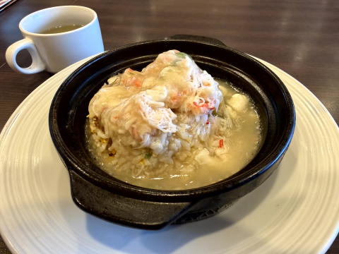 お昼は、バーミヤンで、本ずわい蟹あんかけ土鍋チャーハン(蟹3倍)でした。土鍋がアツアツで、あんかけをかけたら、じゅわわわわーっと。 ズワイガニは、+500円で 3倍になります。 1倍じゃ、ズワイガニが少なすぎるのでね。