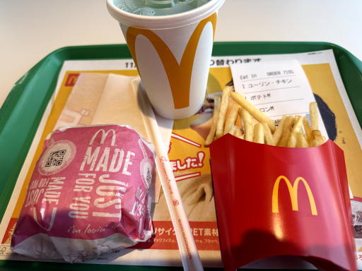 昼は、マクドナルドで、油淋鶏マヨチキン セットでした。