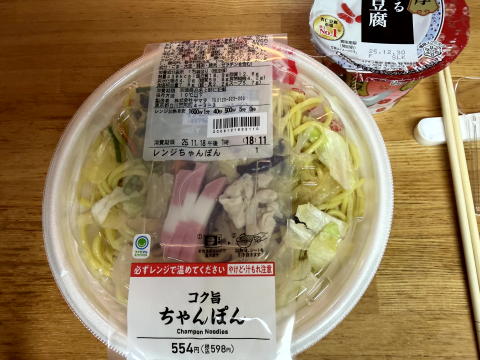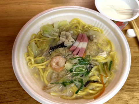 夜は、ファミマの 長崎ちゃんぽん、杏仁豆腐でした。