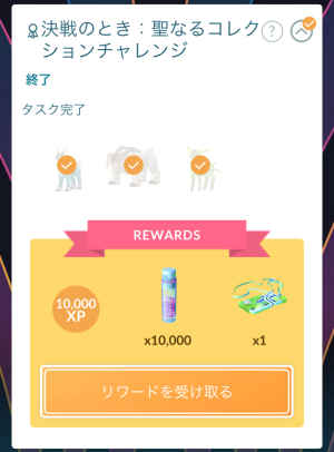 というわけで、伝説ポケモン 3獣(コバルオン、テラキオン、ビジリオン)をゲットしてコレクションタスクを、さくっとクリアです。