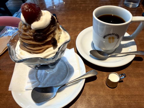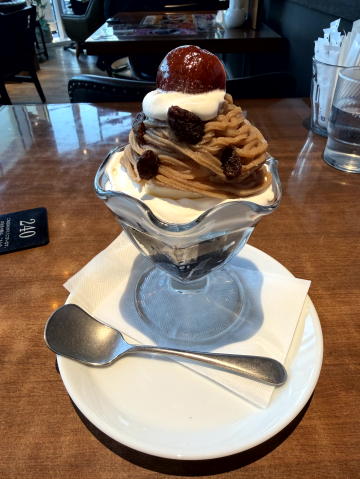 外が真冬の寒さです。ティータイムは、ドトール珈琲店 川崎ゼロゲート店で、栗の実にパフェとブレンド(R)のセットでした。(1,200円)