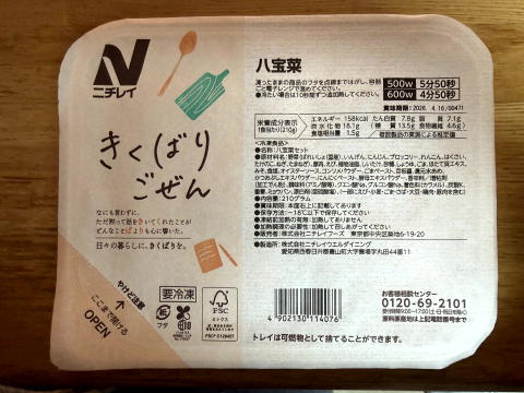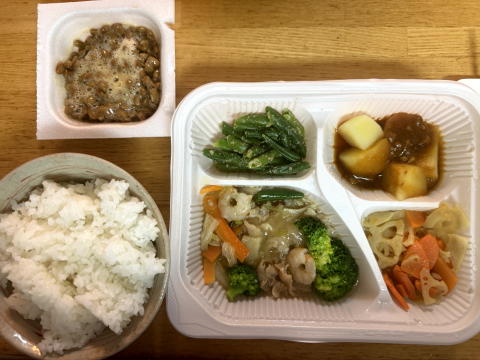 夜は、ニチレイフーズダイレクトの健康管理食(八宝菜)、納豆でした。