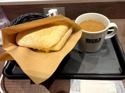 お昼は、大学病院へ行く直前に、信濃町駅のBECKSでパニーニ(ハム&チーズ)、ブレンド(R)でした。