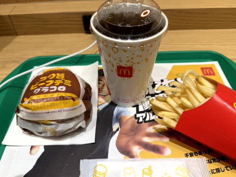 イロチのダイマックスフリージオをゲットしたら、お腹がすいたので、マックで、コク旨ビーフデミグラコロのセットでした。
