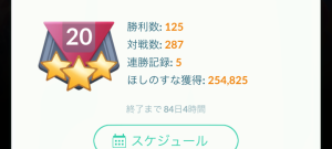 対戦数 287 、勝利数 125で、グルーシャのポーズ、マスクドピカチュウをゲットしました。マスクドピカチュウは、GBLでしかゲットできません。