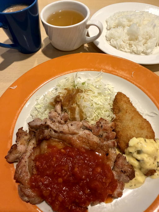 ジョナサンの日替わりランチは、照り焼きチキンとフィッシュフライです。ランチドリンクバーをつけても、1,000円でお釣りがきます。
