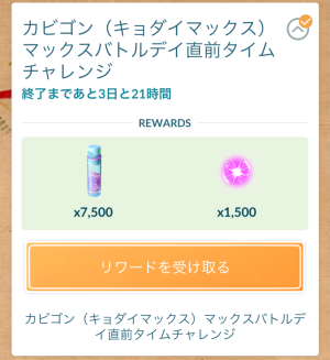 とりあえず、きのうのうちに、キョダイマックスカビゴン直前タイムチャレンジタスクを終わらせておきました。