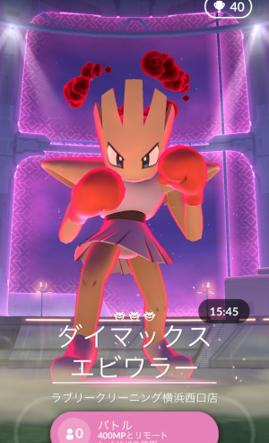 きょうは、パワースポットにいたダイマックスフリージオがいなくなり、ダイマックスエビワラー、ダイマックスサワムラー、ダイマックスワンリキー、ダイマックスマーイーカなどに変わりました。