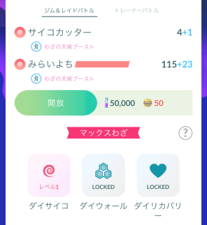 ダイマックスフーディンのダイサイコはレベル 1のままです。(なお、2匹も作らず、1匹にしてダイサイコのレベルをMAXにするほうがよいです。CPが低くても殴られるのはダイマックスハピナスなので問題なし)