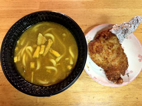 レンジ用の冷凍カレーうどんですが、ぶっちゃけ、麺が固くて、イマイチおいしくなかったです。フライドチキンも、ケンタやファミチキみたいなスパイスが効いてないので、素朴な鶏肉の味でした。