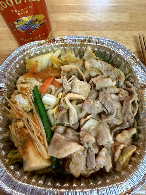夜は、アルミ鍋の豚キムチ鍋うどん 豚肉ましましでした。