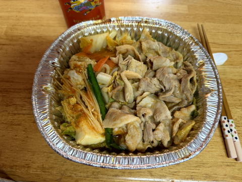 アルミ鍋の豚キムチ鍋うどん 、お肉マシマシは