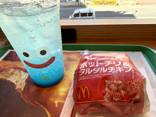 昼は、わたしさんのブログで見たドラクエのスライムのマックフィズ、ホットチリ&タルタルチキン セットでした。