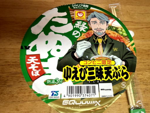 夜は、去年、kinkinさんのブログで見たガンダムGQuuuuuuXコラボのシャリアブルの緑のほうです。シャアの赤いきつねはゲットならずでした。