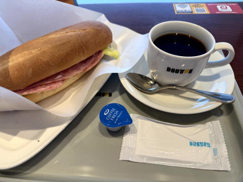 お昼は、ドトールでミラノサンドA、ブレンド(S)でした。