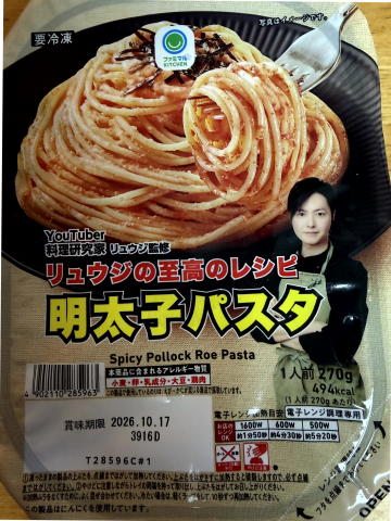 夜は、リュウジの至高のレシピ 明太子パスタ(冷凍)でした。至高とは書いてありますが、ふつうの明太子パスタでした。
