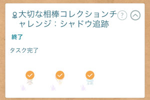 きのう唯一クリアできなかった シャドウ追跡のコレクションチャレンジは、シャドウフォッコが出てクリアできました。ポケストのロケット団を探し回るのではなく、自宅リビングからスピンできるポケストで待っていると、30分おきにポケモンの属性が変わる=自宅でじっとしているのが正解でした。とはいえ、火属性のポケモンはシャドウロコンが 2回出て 3回目がシャドウフォッコでした。水もシャドウメノクラゲが 1回出て 2回目がシャドウケロマツでした。シャドウハリマロンは 1回目で出ました。
