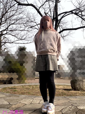 ・ トップスは、アクシーズファムのフード付きで、フランス刺繍がはいっているやつ。
