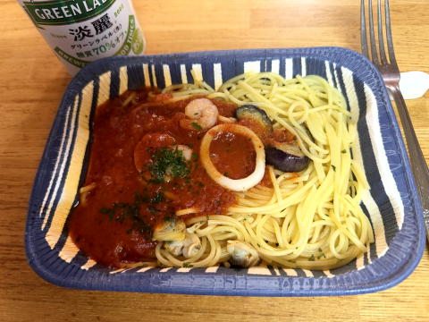 夜は、冷凍パスタ・ペスカトーレでした。