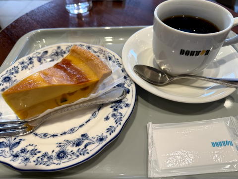 ティータイムに ドトールで かぼちゃのタルト、ブレンド(M)でした。