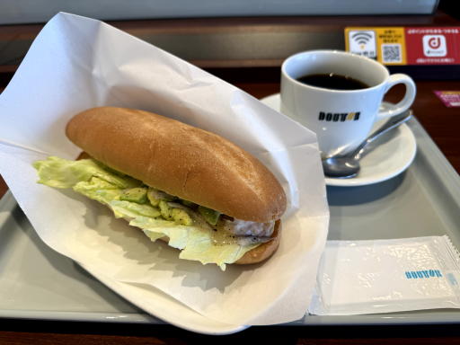 お昼は ドトールで カマンベールinミラノサンドB エビ・アボカド・サーモン、ブレンド(M)でした。