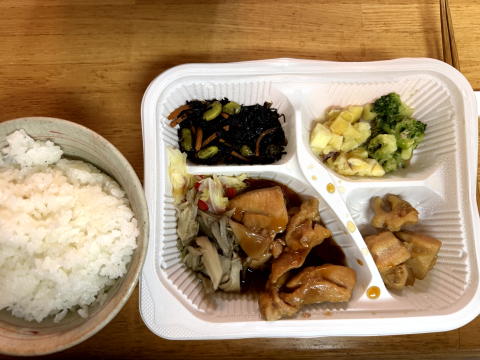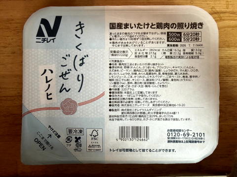 夜は、ニチレイフーズダイレクトの健康管理食(国産まいたけと鶏肉の照り焼き)でした。