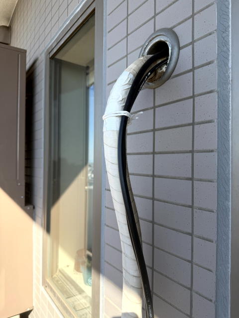 アンテナが 2本で、ケーブルも 2本になり、両方共、エアコンのダクトから屋内へ引きこみます。