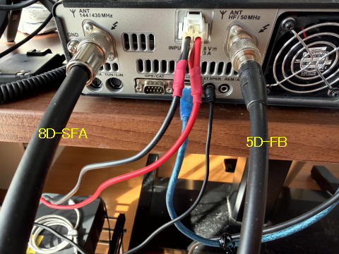 きょうは、VHF/UHF(144MHz, 430MHz)用のアンテナケーブルを 5D-QEV から 8D-SFA-Liteに交換しました。