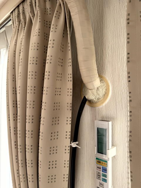 エアコンのダクトの穴は、エアコン工事用のパテ(粘土)で埋めます。