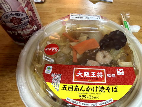 夜は、大阪王将の五目あんかけ焼きそばでした。